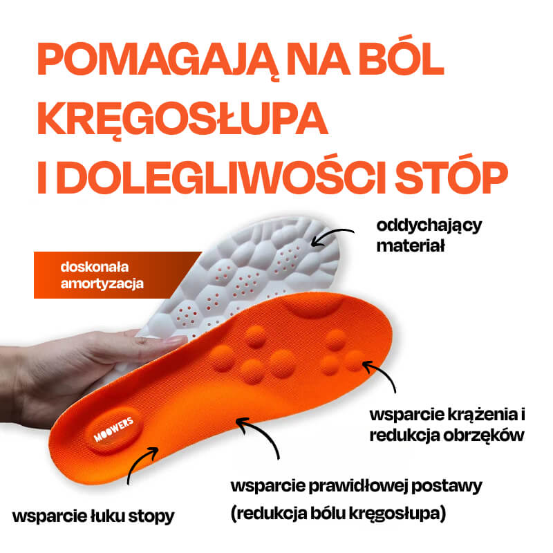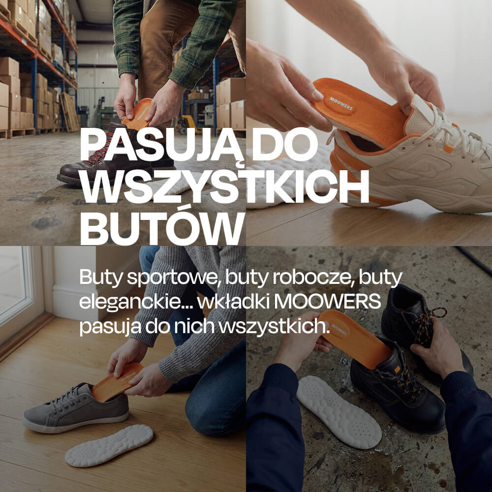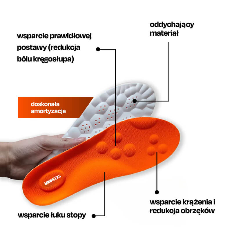Wkładki MOOWERS zapewniają amortyzację, stabilizację i wsparcie łuku stopy, dzięki czemu każdy krok staje się bardziej komfortowy.